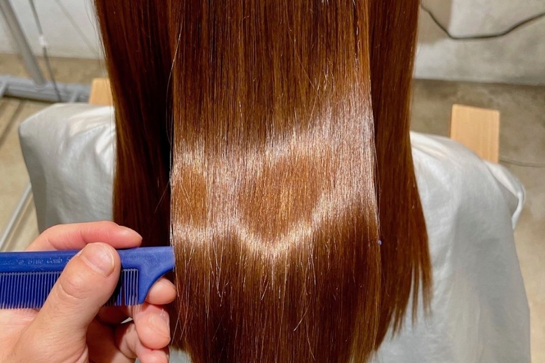 縮毛矯正をしてもツヤはでますし、仕上げにコテで伸ばしたり巻いたり、熱処理をするとツヤは簡単に出ます。